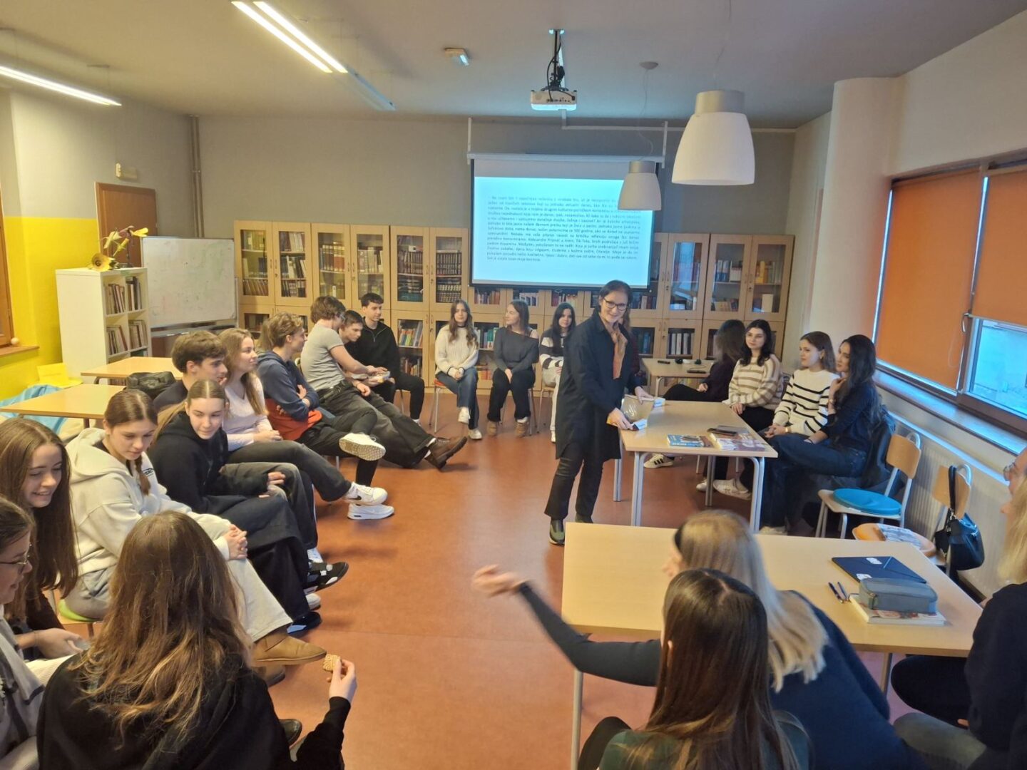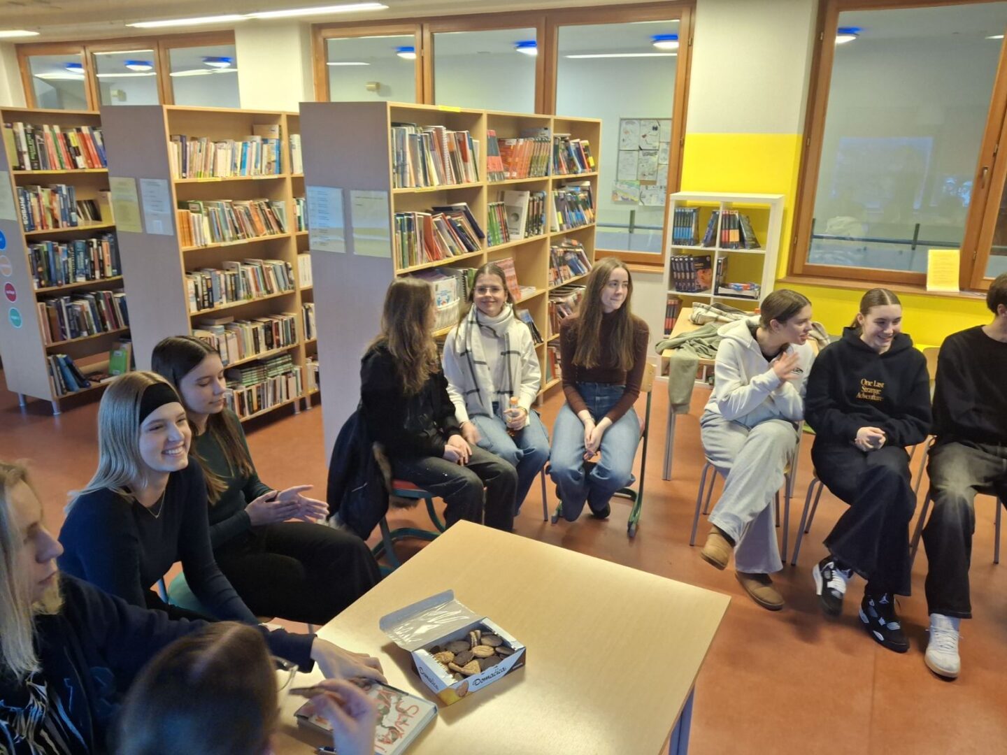 U sklopu projekta Čitanje nas povezuje ove su školske godine povezane dvije škole – Gimnazija Josipa Slavenskog Čakovec i naša Prva gimnazija. Kao početna projektna aktivnost održan je susret učenika obiju škola u četvrtak 4. prosinca 2025. u našoj školskoj knjižnici. U raspravi o iznimno popularnom romanu Kristiana Novaka Slučaj vlastite pogibelji sudjelovalo je ukupno 24 učenika, od koji je 13 učenika naše škole.