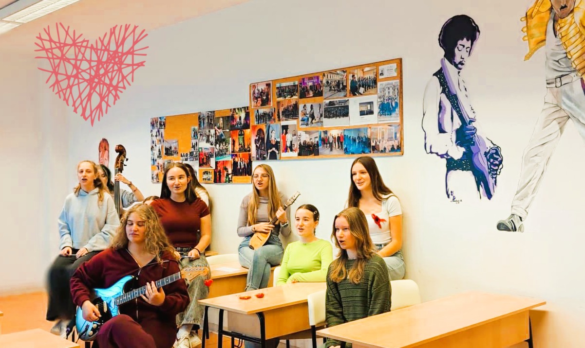Ove godine na inicijativu školske knjižničarke Jasminke Horvatić-Bedenik u knjižnici su se učenici upoznali s tekstom himne na engleskom jeziku, koji je generiran uz pomoć alata umjetne inteligencije, pod nazivom Voices of Europe. Obilježavanje 25. godine Europskog dana jezika organizirali smo održavanjem radionica u čitaonici s nastavnicima engleskog, njemačkog, francuskog, španjolskog i latinskog jezika te s učenicima koji uče navedene jezike. Nastavnica Maja Zidarić sa svojim je učenicima prevela tekst himne s engleskog na hrvatski jezik. Nastavnica glazbene umjetnosti Slavica Kelemen i članovi glazbene radionice prilagodili su tekst vokalnoj izvedbi u duhu našeg jezika i zadane teme; izrađen je aranžman za instrumente (kontrabas, gitara, tambura bisernica) i uvježbana je konačna izvedba. Za videosnimku zaslužna je nastavnica Vesna Novosel Martinić. Nabrojenim aktivnostima nastojali smo zajedničkim snagama stvoriti višejezičnu himnu za 25. obljetnicu Europskog dana jezika i uspjeli smo u tome. Naša verzija himne uvrštena je u globalnu verziju Himne, a naša (Prve gimnazije Varaždin iz Hrvatske) izvedba u cijelosti će biti objavljena na stranicama ECML-a (Europskog centara za moderne jezike Vijeća Europe). Bravo!