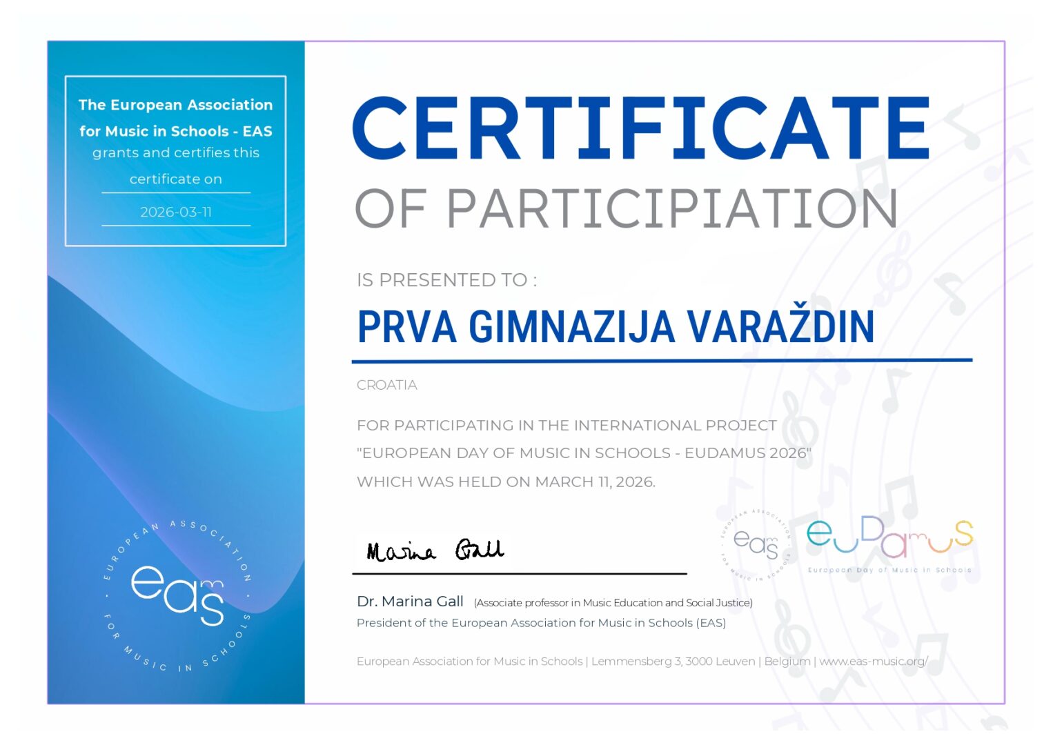Članovi glazbene radionice Prve gimnazije Varaždin priključili su se proslavi i sudjelovali su u glazbenim aktivnostima, kvizu, zagonetkama i zajedničkoj pjesmi „Together”.