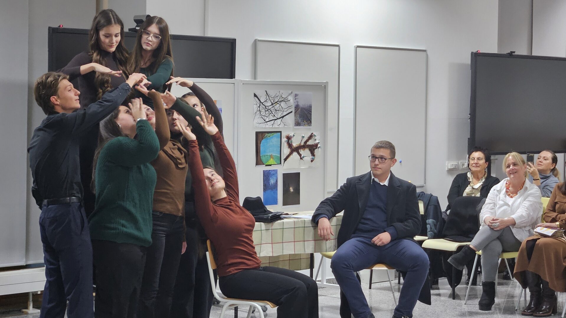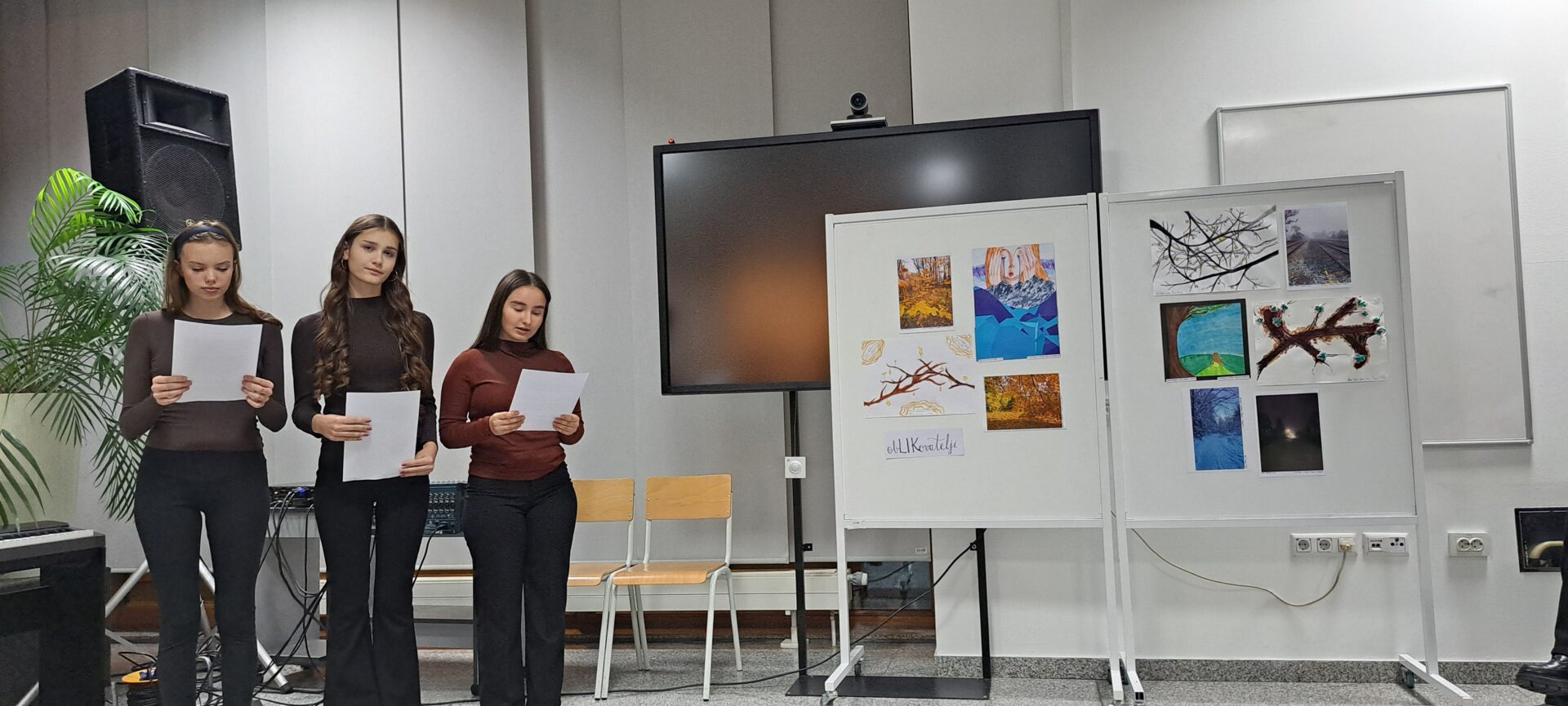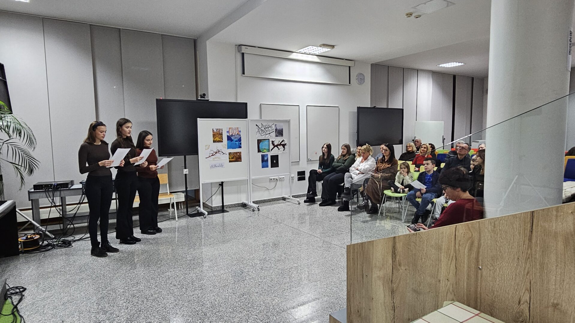 Prostor Prve gimnazije Varaždin 27. studenoga 2025. bio je ispunjen radošću i snažnim sjećanjem na velikoga barda hrvatske književnosti. Uz profesorice Slavicu Kelemen, Tatjanu Ruža i Ivu Pintarić Mandić, podršku u slaganju i povezivanju raznovrsnog programa dale su i profesorice Ksenija Mađarić, Ivana Pintarić i Sanja Horvatić. „Večer Tina Ujevića“ pokazala je snagu suradnje, kreativnosti i interdisciplinarnog pristupa te potvrdila da je projekt „Kulturaonica“ vrijedan doprinos kulturnom i umjetničkom životu škole i šire zajednice.