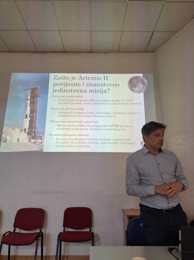 Već tradicionalno, suradnju naše škole i XV. gimnazije Zagreb nastavljamo i dalje. Jučer su talentirani učenici u području matematike, informatike, kemije i biologije u pratnji svojih mentora posjetili XV. gimnaziju gdje su za njih i učenike – domaćine bile organizirane radionice po stručnim područjima ali i vrlo zanimljiv pub quiz ekipa sastavljenih od učenika obiju škola. Bio je to i trening uoči Državnog natjecanja iz informatike. Na početku nas je motiviralo jako zanimljivo predavanje o misiji Artemis i saznali smo mnogo detalja koje iz medija sasvim sigurno ne bismo. U pratnji učenika bili su Tajana Golub Mendaš, Dinko Meštrović i Vesna Novosel Martinić. Dok su učenici marljivo radili na radionicama članovi Tima za darovite naše škole Vinka Sambolec Škerbić, Željka Pačalat, Marko Šafran, Bojan Banić, Aleksandar Meštrić i Janja Banić održali su sastanak s članovima Tima za darovite XV. gimnazije, a nakon njega IB evaluacijski tim u sastavu Marko Šafran, Janja Banić, Irena Kocijan Pevec i Željka Pačalat, održao je sastanak sa koordinatoricom IB programa škole domaćina, ravnateljem i suradnicima. Uglavnom, bio je to kvalitetno ispunjen petak nakon kojeg smo se svi vratili s ponešto više iskustava i znanja. Zahvaljujemo ravnatelju Nikoli Dmitroviću, kolegici Maji Đerek i svim ostalim kolegama XV. gimnazije na lijepom dočeku, trudu i prijateljskoj razmjeni iskustava. Uzvratni posjet slijedi početkom jeseni.