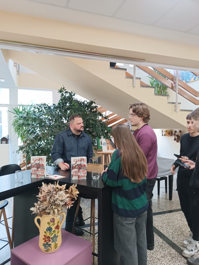 Ukupno 11 učenika iz 2. d., 2. e, 3. a i 3. f razreda te LITRA-e i Theatrona sudjelovalo je 23. siječnja 2026. u razgovoru s piscem Kristianom Novakom, autorom romana Slučaj vlastite pogibelji koji se ove i prošle školske godine našao na popisu izbornih naslova ovih razreda.